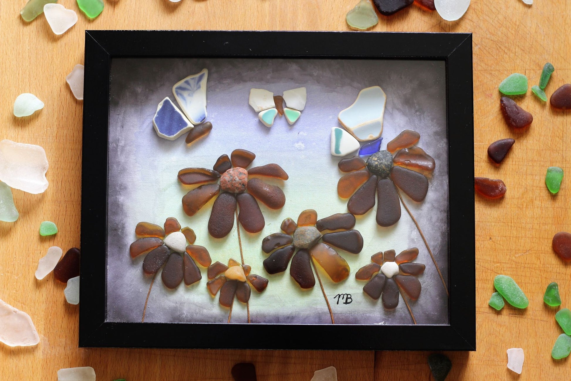 Handmade Sea Glass Painting - Butterfly Dreams