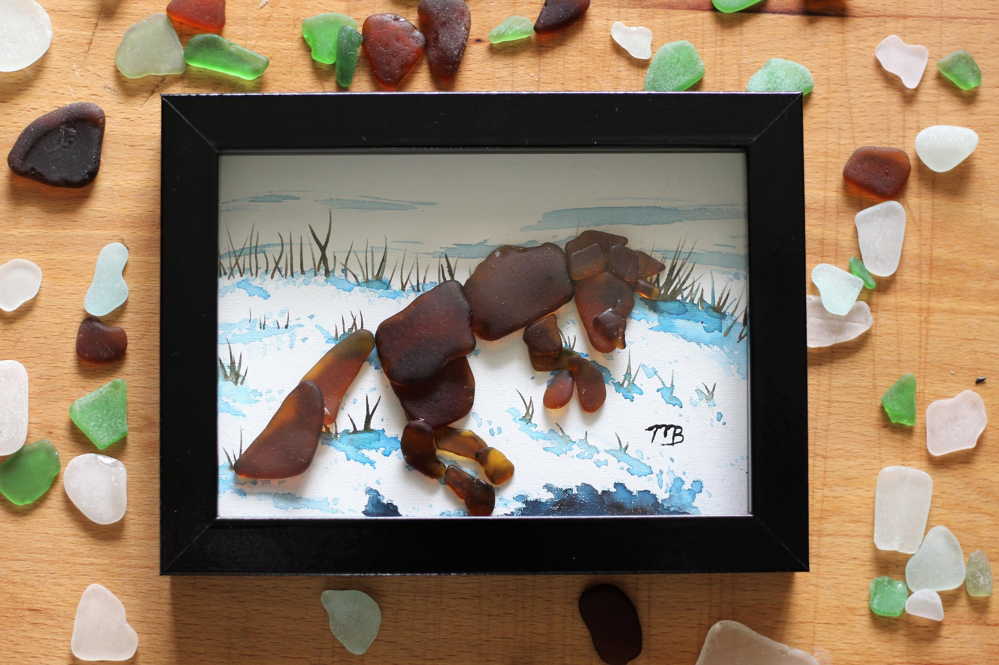 This artwork is painted with professional grade watercolor paint on a canvas panel. All Sea Glass used in this piece was hand-foraged personally by the artist and her husband from the shores of the Bering Sea while they lived in Nome, Alaska. For paintings containing pebbles, they were also hand-foraged personally from the shores of Lake Michigan. Waxed cord and glass beads are also commonly used. Each item is attached to the canvas panel with industrial strength glue to ensure it stays secure.