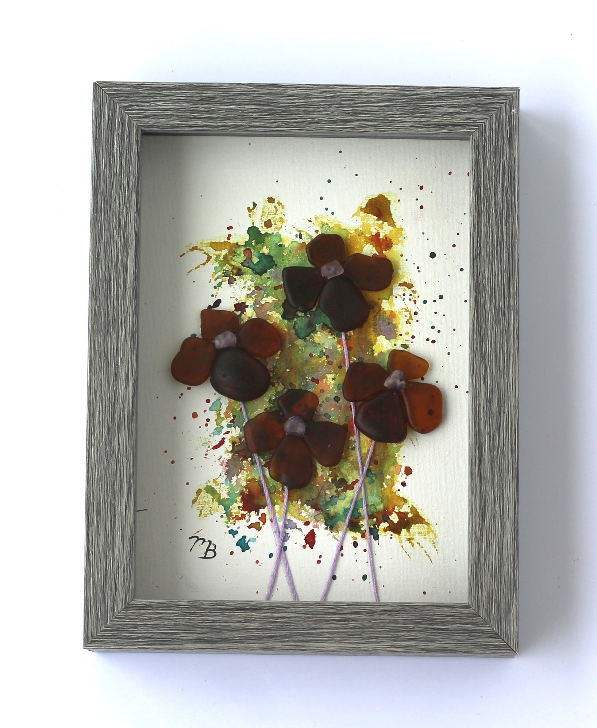 This artwork is painted with professional grade watercolor paint on a canvas panel. All Sea Glass used in this piece was hand-foraged personally by the artist and her husband from the shores of the Bering Sea while they lived in Nome, Alaska. For paintings containing pebbles, they were also hand-foraged personally from the shores of Lake Michigan. Waxed cord and glass beads are also commonly used. Each item is attached to the canvas panel with industrial strength glue to ensure it stays secure.