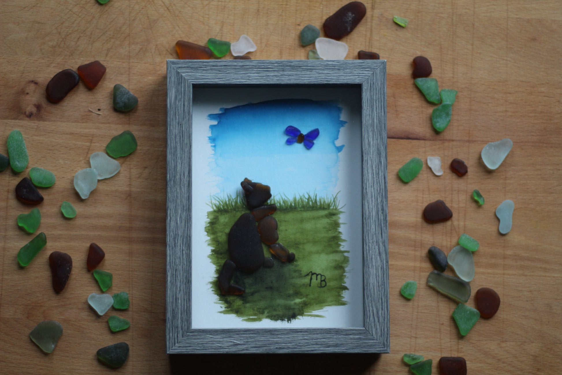 This artwork is painted with professional grade watercolor paint on a canvas panel. All Sea Glass used in this piece was hand-foraged personally by the artist and her husband from the shores of the Bering Sea while they lived in Nome, Alaska. For paintings containing pebbles, they were also hand-foraged personally from the shores of Lake Michigan. Waxed cord and glass beads are also commonly used. Each item is attached to the canvas panel with industrial strength glue to ensure it stays secure.