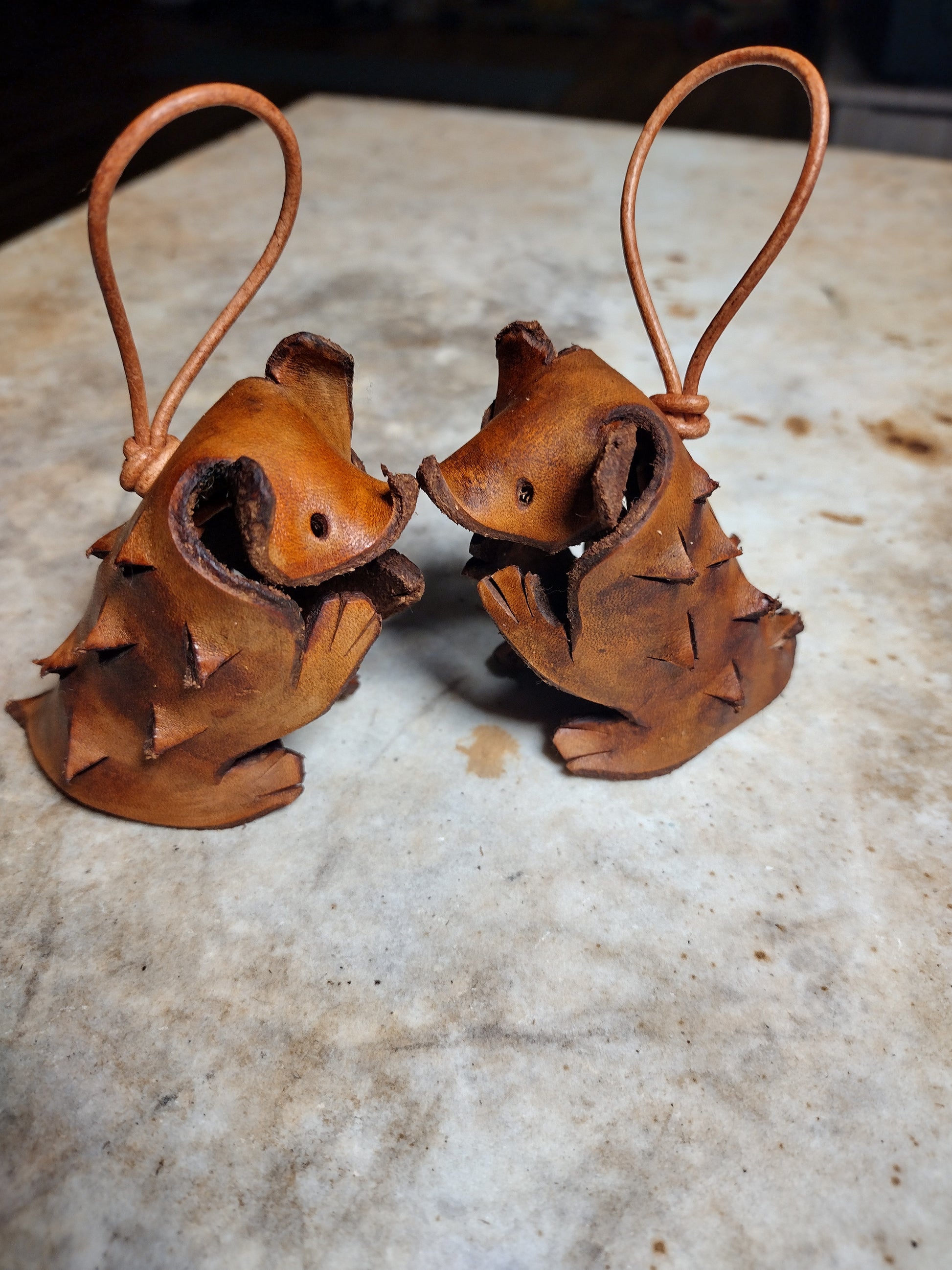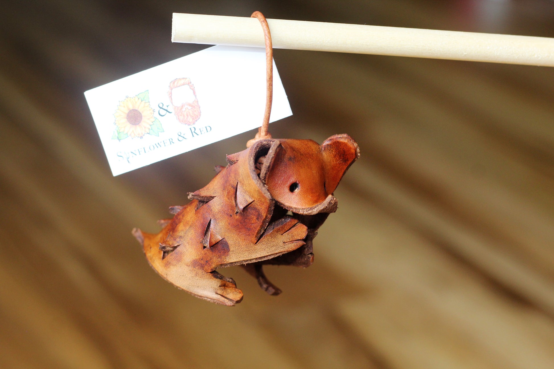 Our expanding Leather Critters collection are all designed and created exclusively by us. Each one is meticulously cut, dyed, and formed completely by hand. They are made out of high quality leather, and have a leather string. Not just for Christmas trees, also makes a unique desk figurine, or everyday décor. Collect them all for a unique and beautiful display.